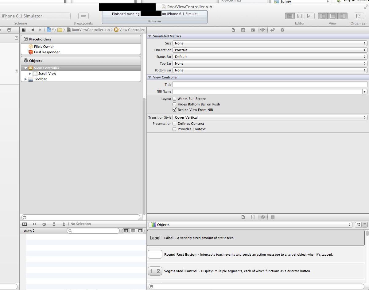 programming – Internet Strategy Guide https://phpprotip.com Together we can defeat the internet Tue, 07 Mar 2017 02:01:20 +0000 en-US hourly 1 https://wordpress.org/?v=4.7.31 55205001 Copyright © Internet Strategy Guide 2013 chance@chancegarcia.com (Internet Strategy Guide) chance@chancegarcia.com (Internet Strategy Guide) http://phpprotip.com/wp-content/plugins/podpress/images/powered_by_podpress.jpg Internet Strategy Guide https://phpprotip.com 144 144 Together we can defeat the internet Internet Strategy Guide Internet Strategy Guide chance@chancegarcia.com no no ‘UIViewControllerHierarchyInconsistency’, reason: ‘A view can only be associated with at most one view controller at a time! https://phpprotip.com/2013/07/uiviewcontrollerhierarchyinconsistency-reason-a-view-can-only-be-associated-with-at-most-one-view-controller-at-a-time/ https://phpprotip.com/2013/07/uiviewcontrollerhierarchyinconsistency-reason-a-view-can-only-be-associated-with-at-most-one-view-controller-at-a-time/#respond Wed, 24 Jul 2013 00:23:19 +0000 http://phpprotip.com/?p=579 So I was working on an iOS app for a client and received this error when trying to launch the app in iOS simulator. I was assured that the repository I was pulling from was the same codebase as the app currently in the store. After googling, I found several stackoverflow questions on this with a lot of text answers and 1 with a very short explanation with a before and after screenshot that didn’t explain much. As you can tell by the blog URL, iOS is currently not my programming strength, so I decided to make a blog post to go slightly deeper into this and compile the bits I learned from debugging this.