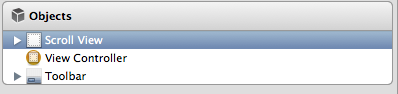 Hey! Look, there’s the ViewController and something called Scroll View. We’re probably on the right track. It’s right there, under Objects. Let’s take a closer look at that.